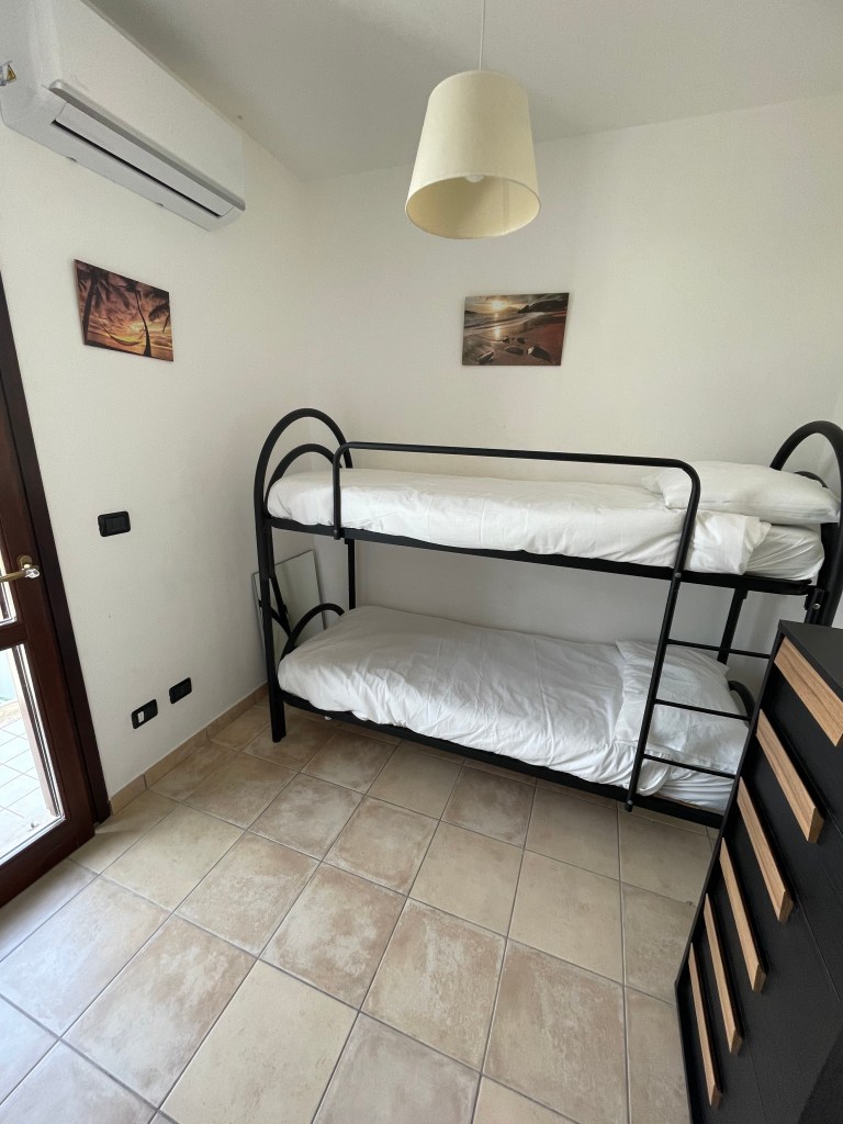 On the ground floor you find the kitchen, living room, bathroom and outdoor lounge. On the first floor 2 bedrooms with terrace: one double and one twin with bunk beds. On the top floor, the solarium terrace has a laundry and ironing room. All the rooms are air-conditioned. The external masonry works are in “Pietra Leccese” a luxury limestone that’s very soft and workable, and thus suitable for sculptures.